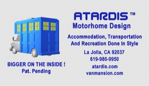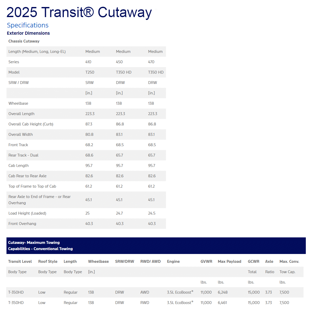 10.7' (5.7 m x 2.41 m x 3.26 m) on a Ford Transit van chassis