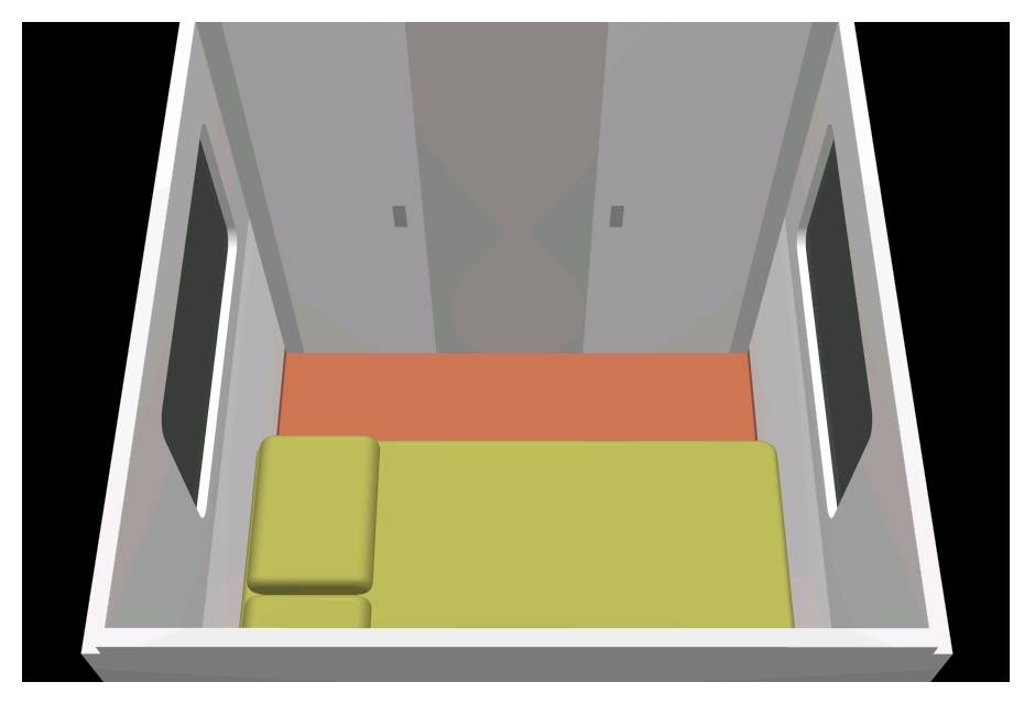 • 20.0' x 19.5' x 16.5' (6.1 m x 5.94 m x 5.03 m) in its